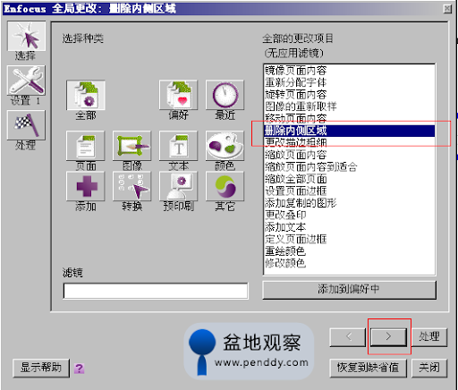 (4)然后会出现下图所示界面,此时务必要点击红框所示的“从选择定义区域边框”的按钮,此处的工作指定在页面中删除内容的区域,如果没有选择的话,则是沿用上一次选择的区域。